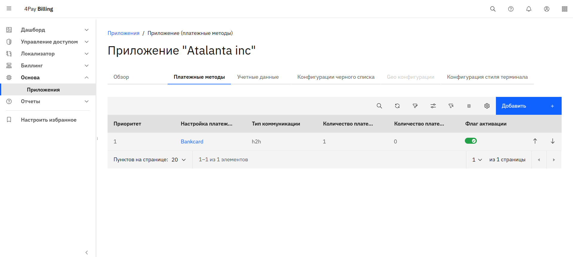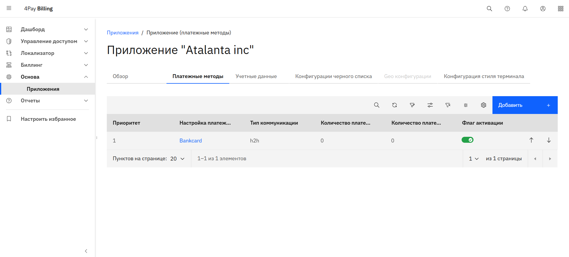 Для этого нужно в выбранном приложении перейти на вкладку Платежные методы и нажать название метода (например, Bankcard).