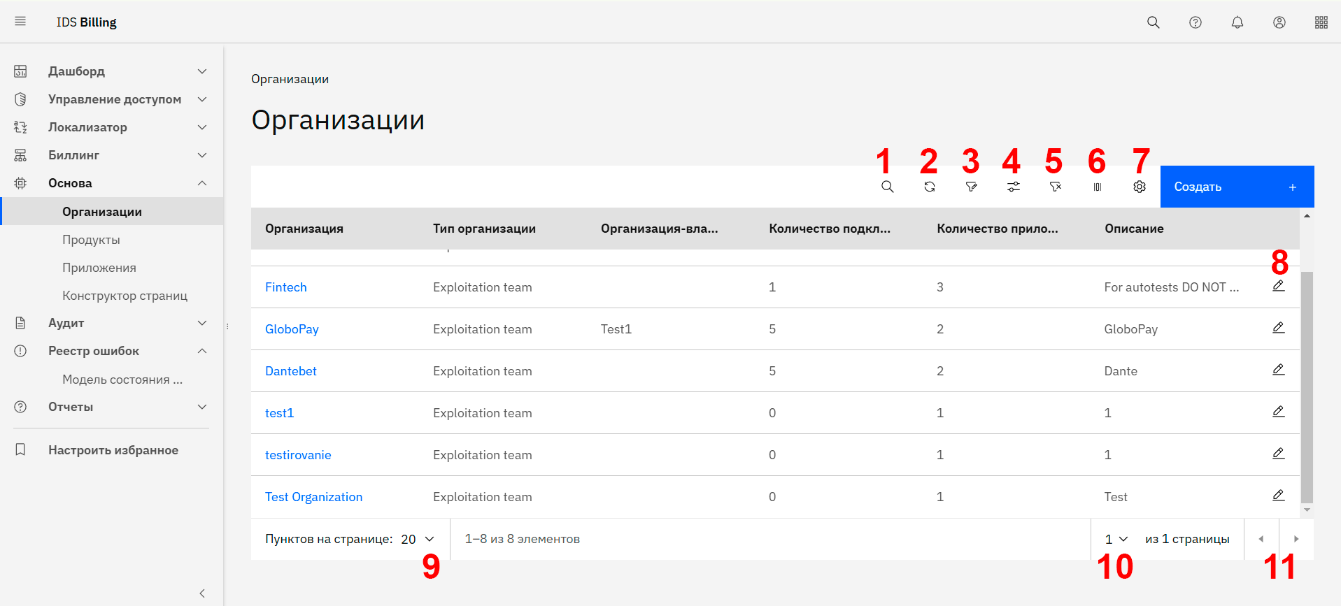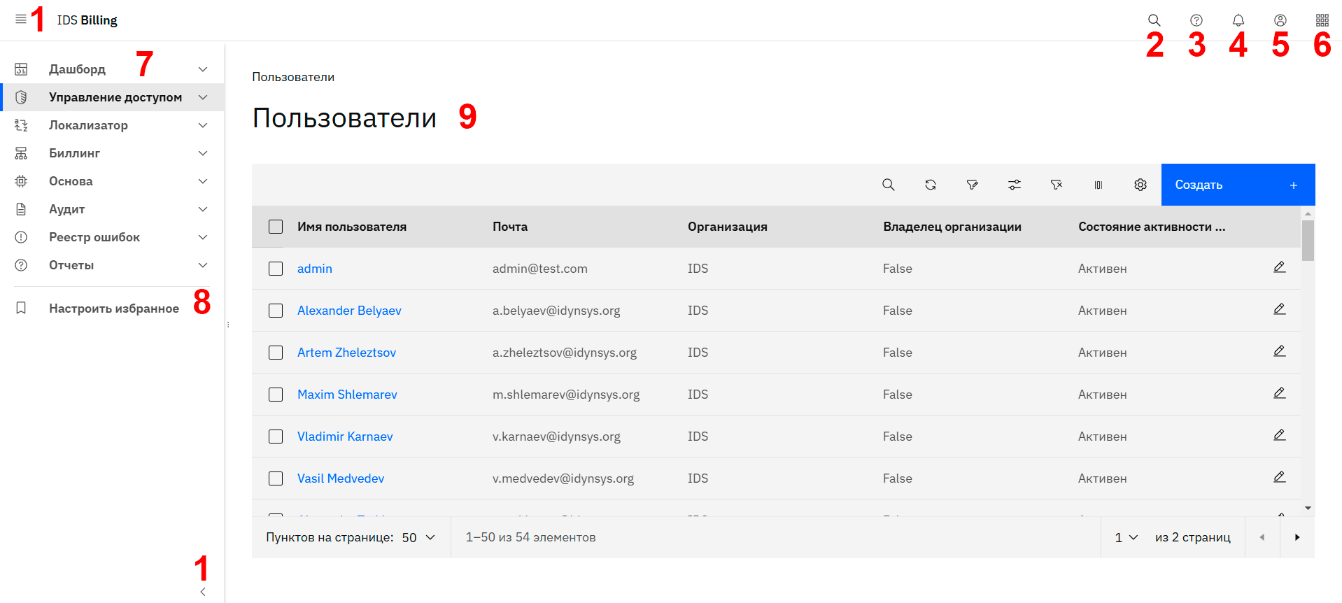 | 9. Основная рабочая область | Отображает всю информацию, к которой есть доступ у пользователя. Здесь пользователь просматривает и редактирует данные. | Подробно для каждого продукта рассмотрим ниже. |