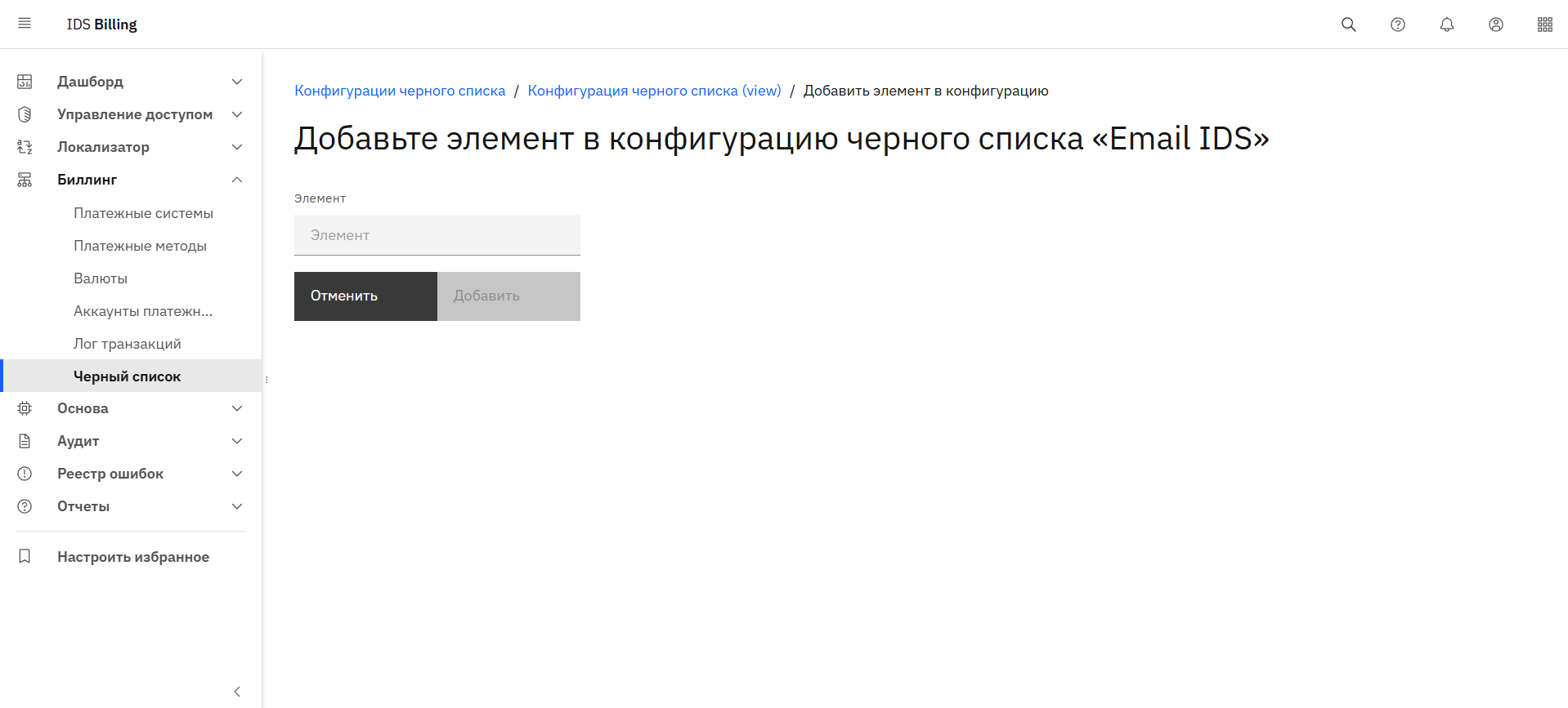 Для этого нужно перейти в продукт Биллинг, подраздел Черный список и нажать “Добавить”.